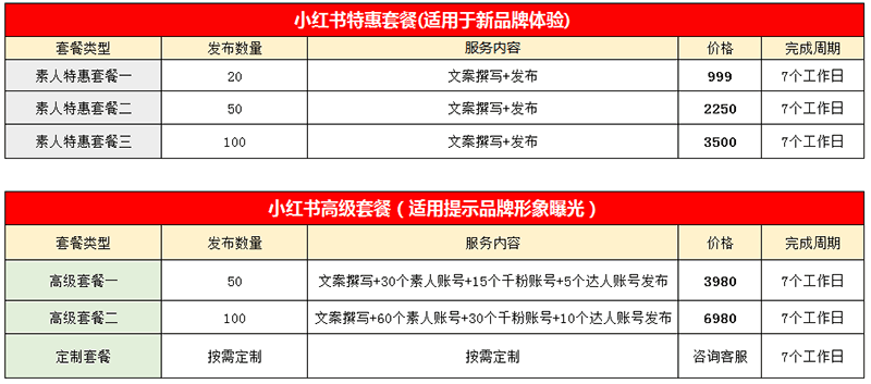 小红书推广价格套餐